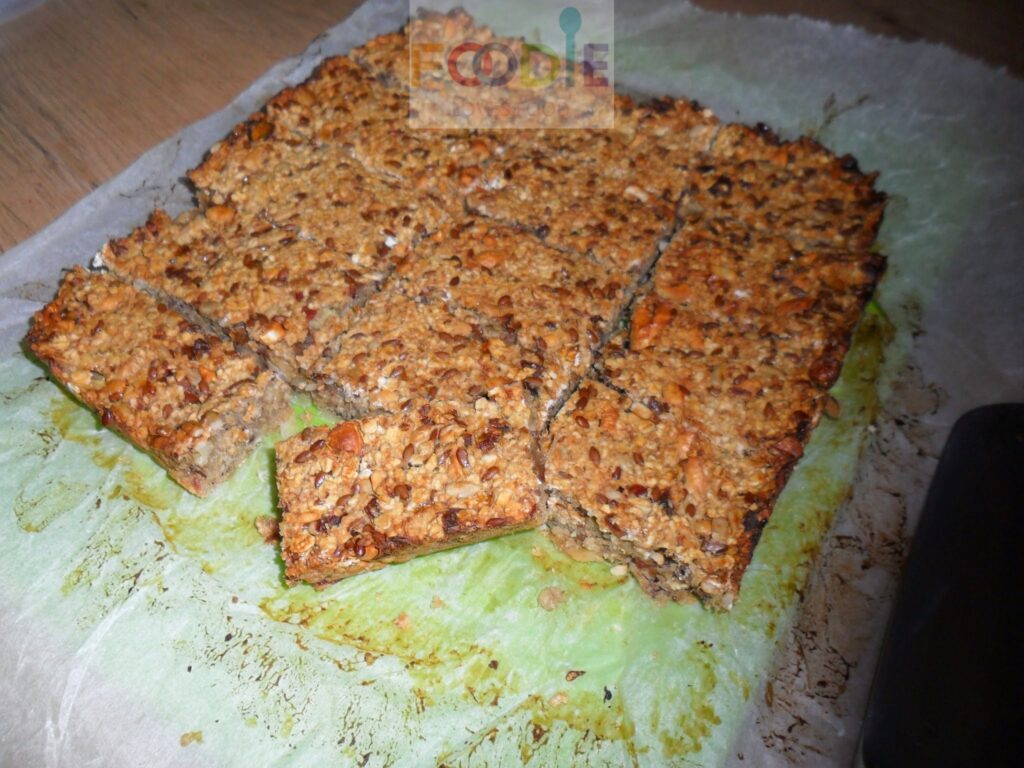 Een gezond en verantwoord tussendoortje, het is heel snel klaar en je kunt er 15 repen uithalen. Je kunt ze een weekje in de koelkast bewaren. Maar invriezen gaat heel goed; ‘s morgens kun je ze uit de vriezer halen en je hebt een vers tussendoortje voor een werkdag.