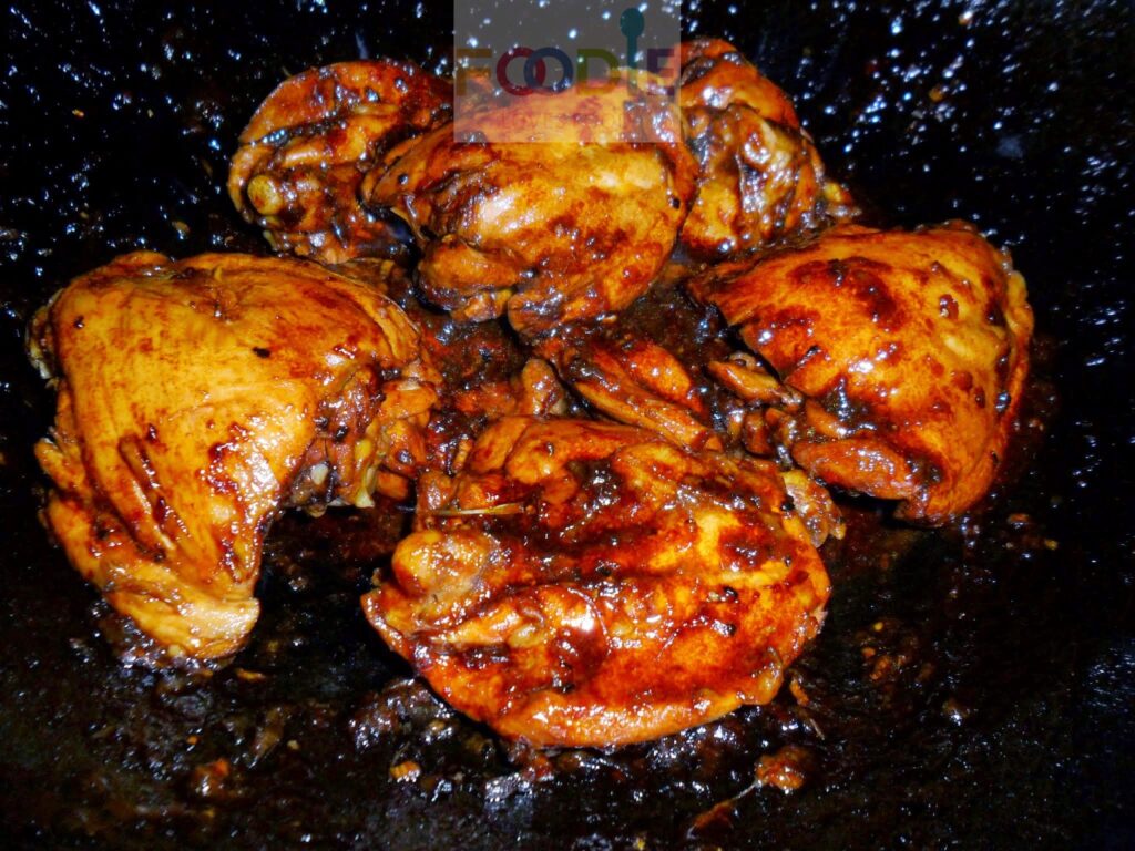 Heerlijke gestoofde kip, die echt perfect smaakt bij javaanse bami.